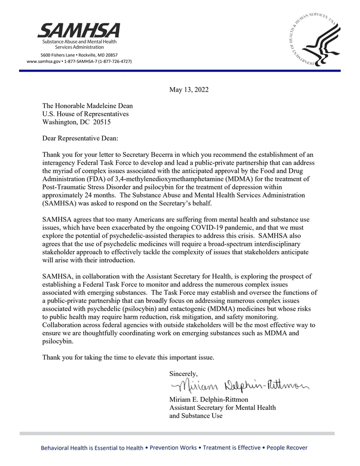 As twin mental health and drug misuse crises kill thousands of people per week, the potential of psychedelic-assisted therapies “must be explored,” urges a federal letter on behalf of the U.S. health secretary. (read)